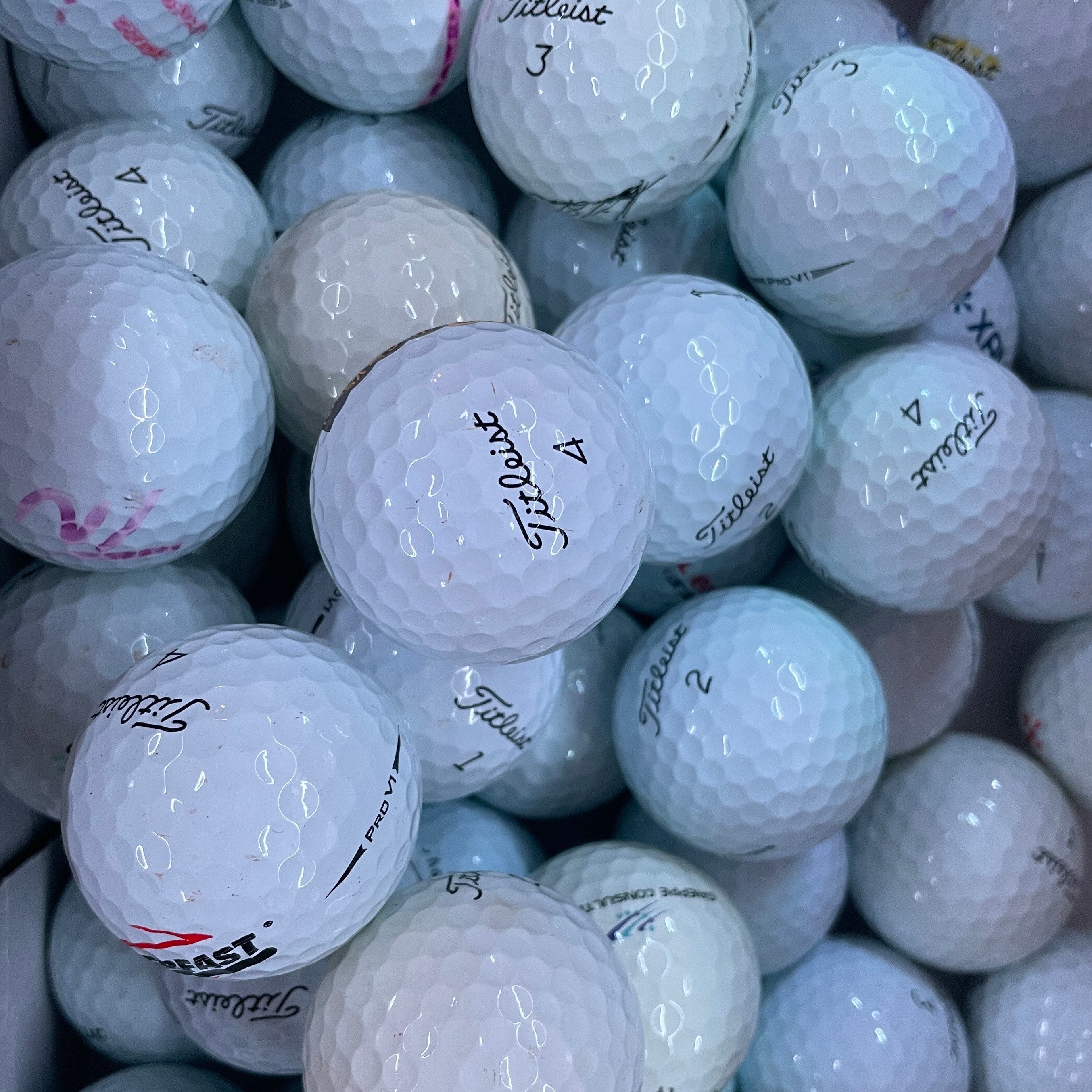Bollarna är i princip som nya men skönhetsfel och lätta nyanskillnader som inte påverkar prestandan kan förekomma. Tusch eller företagstryck kan finnas på bollarna.